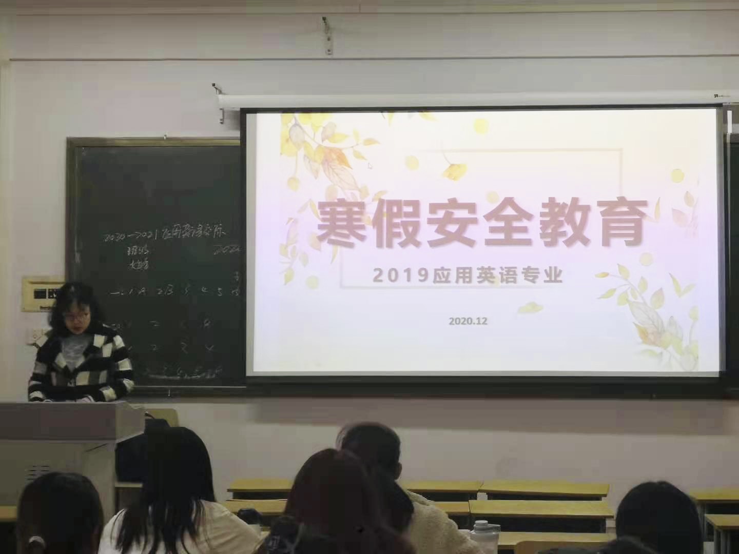 在寒假即将来临之际,公司组织辅导员深入班级召开2020-2021学年第一学期寒假、春节安全教育班会,进而增加同学们的安全知识,增强同学们的自我保护能力。