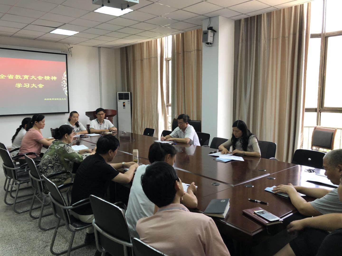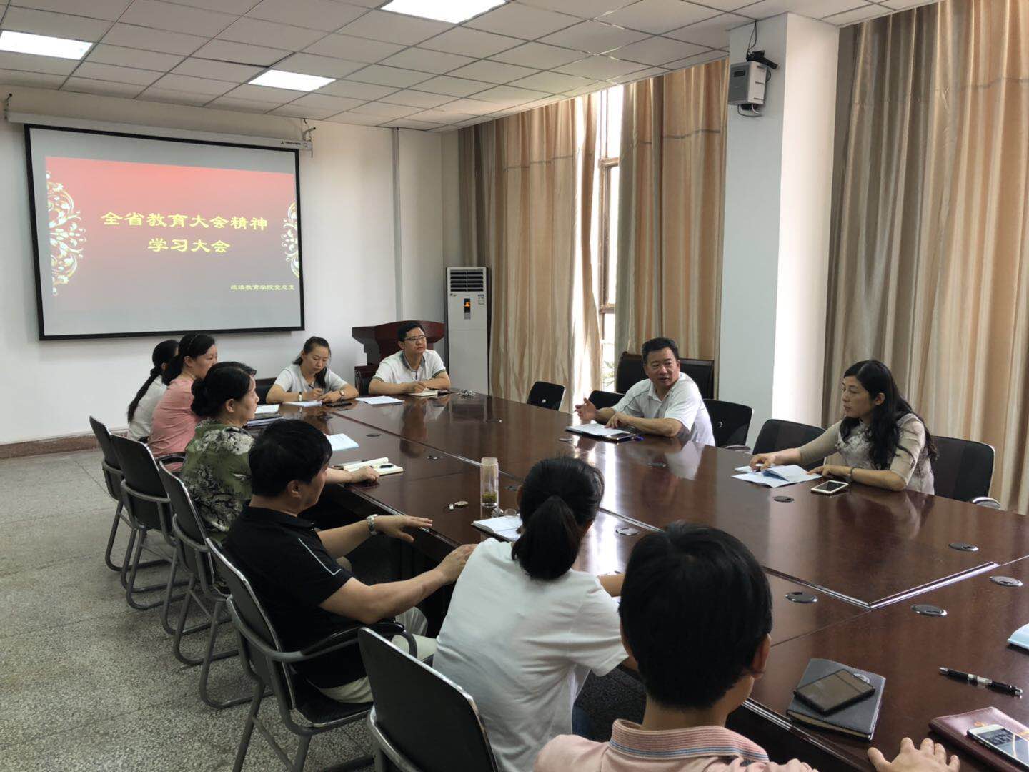 球速体育于7月2日上午在学院会议室召开了关于全省教育大会精神的专题学习会议。全院教工参加。