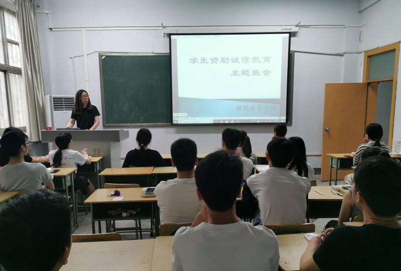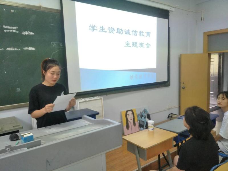 本次主题班会包括辅导员讲话、资助政策宣传、视频推广和宣读诚信倡议书四部分。整个活动中,主持人从国家助学金和生源地信用贷款对比中讲解了高校资助政策和征信政策,引导员工了解资助政策,认识诚信贷款、诚信做人的重大意义,之后观看了诚信还贷视频和员工考试失信视频,引导员工自省其身,最后员工代表上台郑重宣读诚信倡议书。