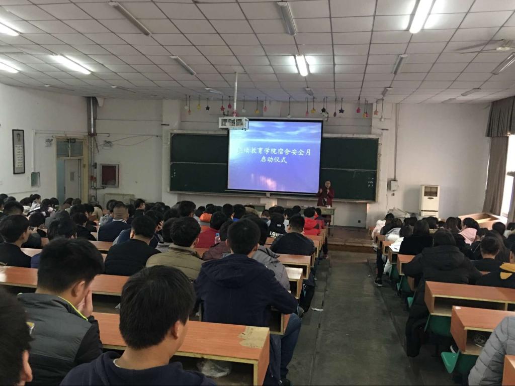 12月7日下午,在航海校区1号教学楼阶1教室,球速体育组织全体员工参加“员工宿舍安全月” 活动启动仪式。