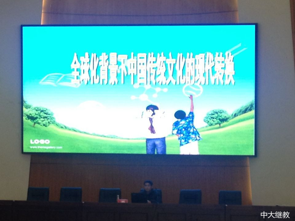 本次课程讲授的是《全球化背景下中国传统文化的现代转化》。曹发军教授由什么是文化讲起,然后是我国传统文化的发展历程,从古至今,为我们一一叙说、点评。中国的传统文化,历经2000多年的封建统治,要想在社会主义中国继续发挥它的巨大功用,就必须同现代文明相结合。 古今文明的碰撞,既有利于传统文化适应现代需求,又要保护优秀的传统文化不遗失于现代生活。