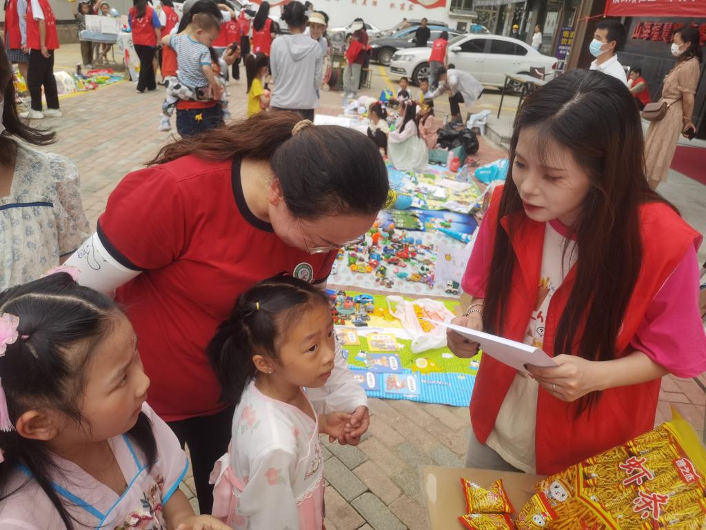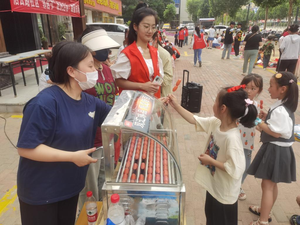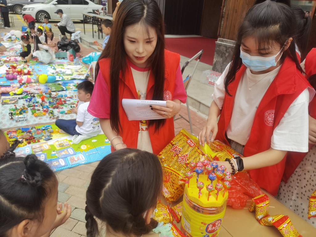 上午9点,志愿者们提前到场,帮助社区工作人员布置活动现场,搭建摊位。随后志愿者们又分成了不同的小组,分管着不同的摊位和奖品。志愿者需要与到达摊位的小朋友进行知识问答、颠乒乓球等游戏,通过之后即可获得奖品。活动现场热闹非凡,吸引了很多社区居民。很多志愿者们也加入到了现场的游戏中,并且在小朋友的摊位里购买到了自己感兴趣的东西。