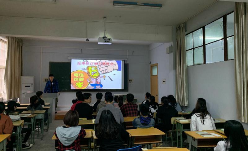 5月20日球速体育在2号教学楼举行“电信防诈骗”主题班会。本次班会由各班辅导员主持,学院全体同学参加。